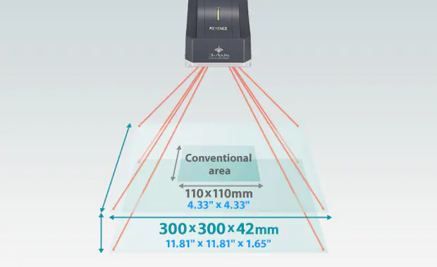 典型的系统只能在二维(X和Y)上进行标记。KEYENCE激光标记器具有3轴光束控制,允许它们在更大的区域进行标记,补偿部件变化,并通过零物理设备调整来纠正安装限制。