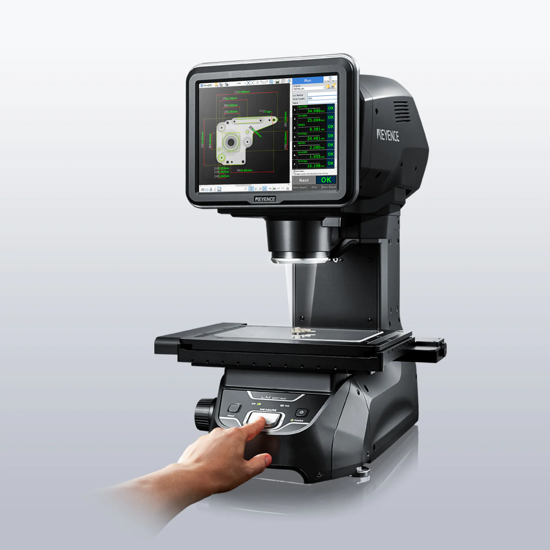 LM系列高精度即时测量系统是一种自动检测系统,只需按下一个按钮,即可进行+/-0.7μm精度和+/-0.1μm重复性的测量。与IM系列类似,该装置具有内置边缘检测功能,可自动聚焦和照明。该装置还自动记录测量数据并创建详细的检查报告。这张图片展示了我们最新的LM-1100型号,其中包含用于精密光学检查的高分辨率双远心镜头和9 x 5“的大视场。