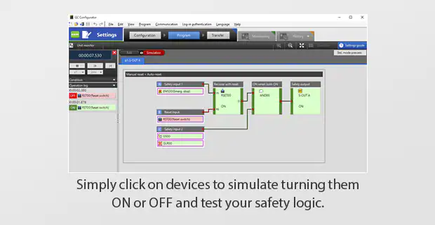 GC Configurator软件可以从KEYENCE网站免费下载。这个软件有一个简单的模式,不需要任何真正的编程-你只需要选择你的输入设备和应用程序。使用EASY模式创建的安全控制可以充分取代由多个安全继电器单元构建的传统控制系统。即使是刚接触安全控制器的用户也能轻松操作。