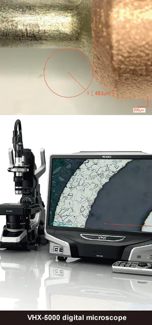 除了能够直接使用VHX数字显微镜进行这些测量外,Guillon先生还欣赏其高质量的屏幕、小的形状因子、照明模式,以及为了观察几何复杂部件而移动透镜单元的事实。Guillon先生指出了VHX的另一个非常有用的特征:“它不仅可以方便地记录图像并通过网络传输到另一台电脑上观看,你还可以使用连接到VHX的另一台电脑获取图像。”